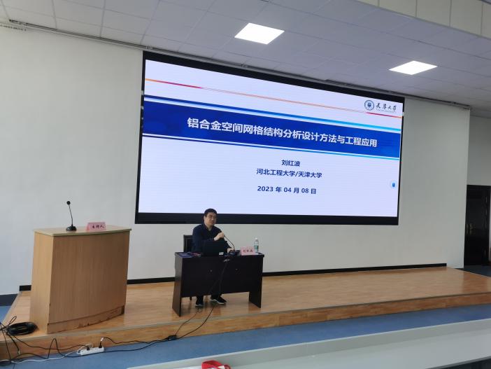 刘红波以“铝合金空间网格结构分析设计方法与工程应用”为题,详细介绍了铝合金空间网格结构的静力性能、稳定性能、抗火性能、抗风性能以及相关设计方法的研究。最后,他介绍了铝合金空间网格结构的工程应用,让学院师生了解了铝合金的发展现状和未来趋势。会后,刘红波与现场师生对铝合金研究中的相关问题进行了解答、交流和讨论。讲座内容丰富,见地深刻,启发性强,学院师生受益颇多。