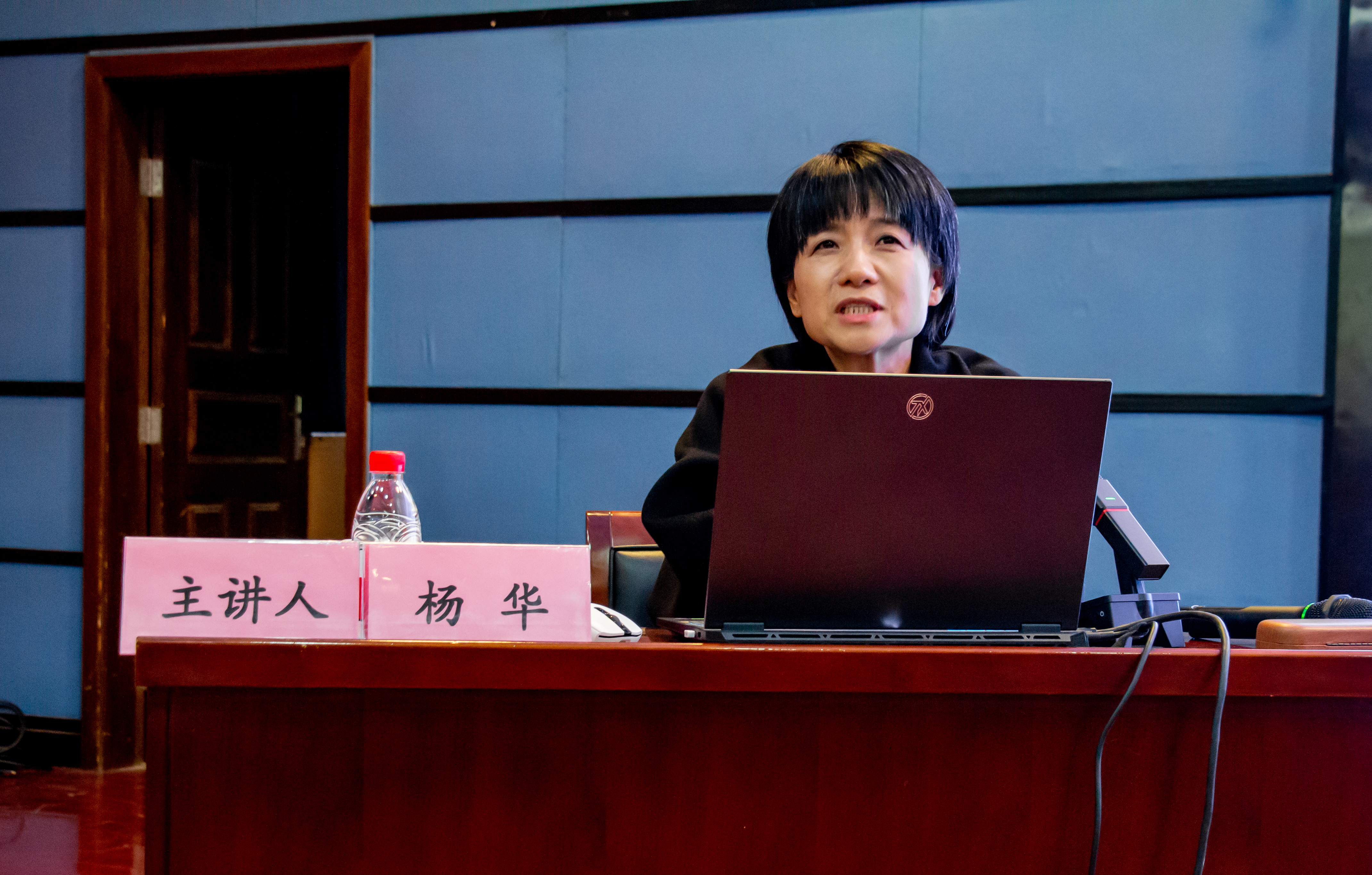 杨华报告的题目为《在接续奋斗中谱写中国式现代化新篇章——深入学习贯彻党的二十届四中全会精神》。她阐述了党的二十届四中全会的重大意义和深远影响,并从“十五五”时期经济社会发展的历史方位、指导方针、主要目标、战略任务、重大举措和根本保证等方面对全会精神进行了深入解读。她表示青年学生要认真感悟“十四五”时期我国发展取得的重大成就,认真学习领会“十五五”规划建议对我国经济社会发展作出的系统谋划和战略部署,将全会精神内化于心、外化于行。