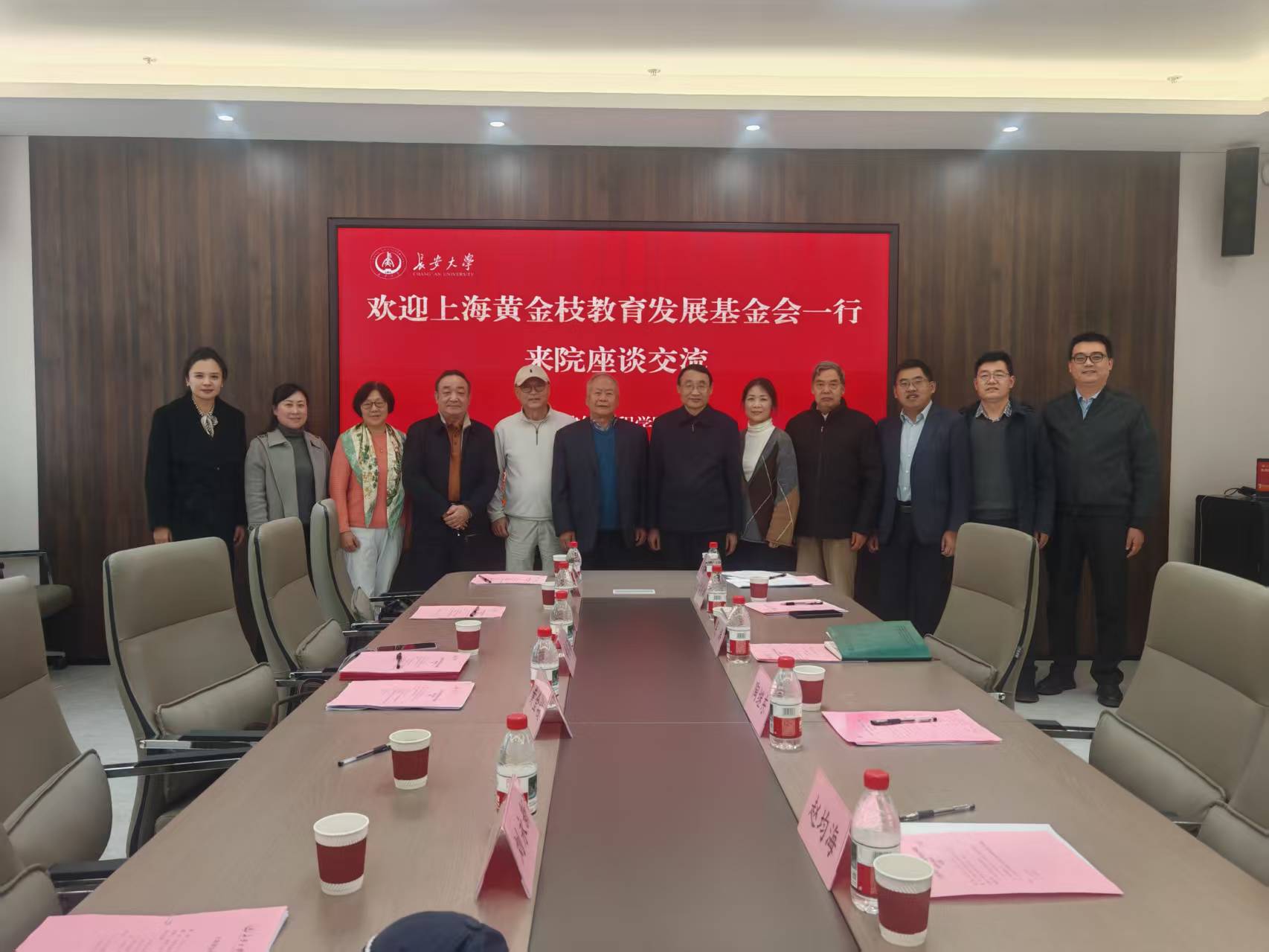 11月21日下午,上海黄金枝教育发展基金会来麻将胡了2(中国)官方网站 座谈交流,上海黄金枝教育发展基金会名誉理事长黄金枝、理事长黄奕瑾、副理事长刘永新、副理事长印晓晴、秘书长陈倩茹、捐赠人代表冯晓慧,校党委副书记、纪委书记陶继东,社会合作处副处长郑睿、学院党政领导等参加座谈。座谈会由麻将胡了2(中国)官方网站 党委书记吴涛主持。