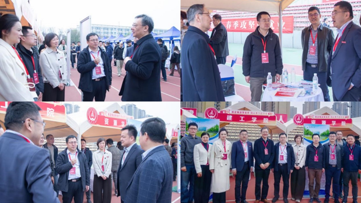 3月25日,长安大学2026届毕业生春季就业双向选择洽谈会在北校区朝晖运动场举办,学院抢抓春季招聘“黄金窗口”,精心组织并有序动员2026届毕业生及各年级在校生踊跃参会,为毕业生顺利高质量就业按下“冲刺键”。期间,校党委书记陈志坚、校党委副书记徐引正、副校长黎开谊、副校长杜强来到学院“访企拓岗”洽谈区就业服务点,详细了解学院毕业生就业推进情况,并对下一阶段就业工作提出要求,强调要持续深化校企对接,全力拓宽就业渠道。